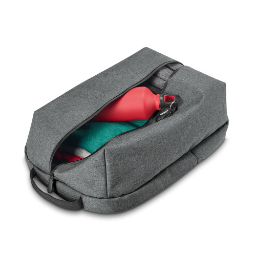 Mochila para notebook. 600D de alta densidade. Com 2 compartimentos. Compartimento posterior forrado, com diversos bolsos interiores e 2 divisórias almofadadas para notebook até 15.6'' e tablet 10.5''. Compartimento frontal forrado, ideal para transporte de roupa (ou para lazer). Parte posterior e alças almofadadas. Alça para transporte em trolley. 300 x 450 x 160 mm