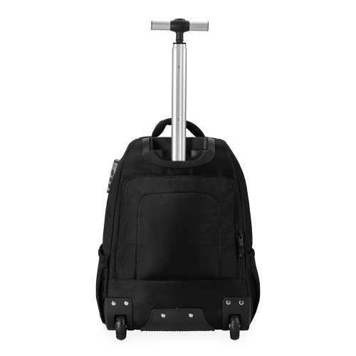 Mochila trolley em nylon 27L, ideal para brindes corporativos premium e viagens profissionais. Compatível com padrão de bagagem de mão, possui compartimento para notebook até 15,6”, múltiplas divisórias internas e bolsos laterais para organização completa.