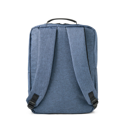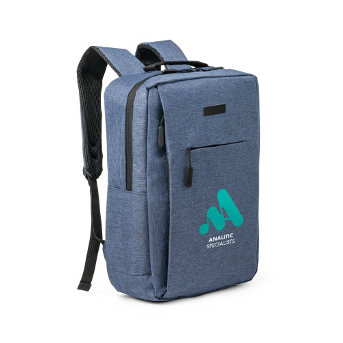 Mochila em poliéster 300D, ideal para brindes corporativos modernos e uso profissional. Possui compartimento principal com bolso acolchoado para notebook até 15,6”, divisórias internas organizadoras, bolso frontal e lateral.