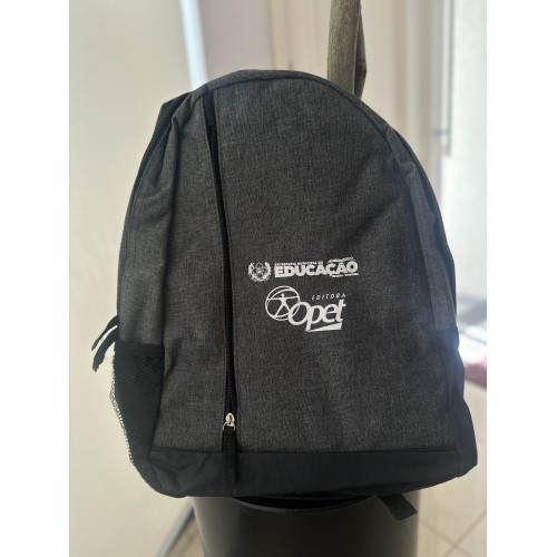 Modelo prático para o dia a dia, com compartimento frontal com zíper, bolso lateral em malha e alça de mão, oferecendo organização e funcionalidade.