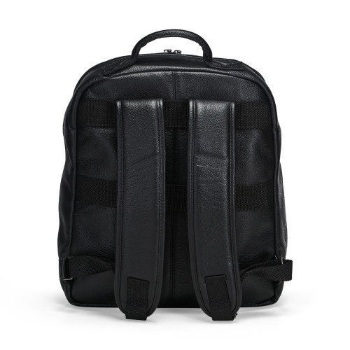 Descrição: Mochila confeccionada em couro com revestimento interno em poliéster e capacidade de até 14 litros. Possui compartimento com divisória para notebook de até 14”, bolso frontal com fechamento em zíper, alça superior reforçada e alças ajustáveis para as costas com revestimento acolchoado. Conta também com faixa de engate para malas de viagem e acompanha plaquinha em couro flexível presa por cordão de nylon.