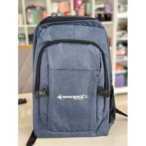 Produzida em Oxford 300D resistente à água, possui compartimento principal com divisória organizadora, bolso frontal com três bolsos internos e bolsos laterais em tela, oferecendo praticidade e organização no uso diário.