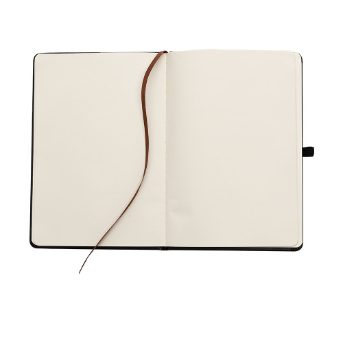Descrição: Moleskine emborrachado com suporte para caneta. Contém aproximadamente 96 folhas amarelas sem pauta, suporte de nylon para caneta (não acompanha), marcador de página em cetim e elástico para lacre com plaquinha de centro emborrachado.