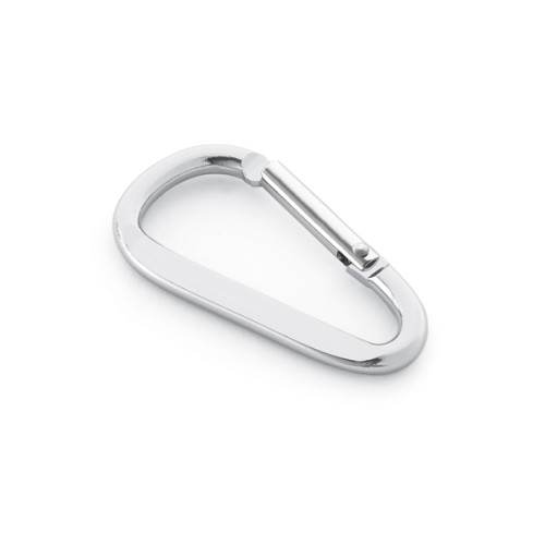Mosquetão. Alumínio. Com área plana para gravação. 24 x 48 x 4 mm