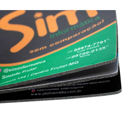 - Mouse pad com base de espuma flexivel antiderrapante de PVC expandido de 3mm (não é EVA) .