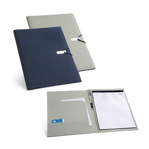 Descrição: Pasta A4 em poliéster 600D, resistente e funcional para uso corporativo. Acompanha bloco com 20 folhas pautadas, ideal para reuniões, treinamentos e eventos empresariais. (Esferográfica não inclusa).