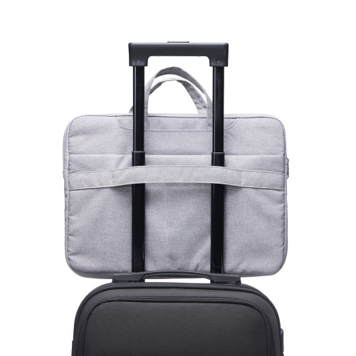 Descrição: Pasta executiva em poliéster com interior aveludado para proteção de notebooks até 15”. Possui 6 compartimentos externos para organização e alça para encaixe em malas de viagem, ideal para rotina corporativa e deslocamentos.