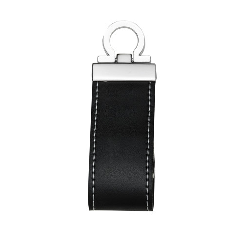 Brinde corporativo elegante com acabamento em couro sintético, costura reforçada e detalhe metálico. Possui argola para chaveiro, ideal para ações premium e fidelização. Personalização em serigrafia ou impressão digital (área 5x2,1 cm).