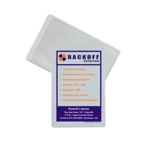 Envelope de PVC ideal para proteger seu jogo da loteria, divulgando sua lotérica.