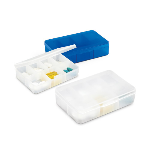 Porta comprimidos com tampa e 7 divisórias, ideal para separar pelos dias da semana. Certificação EU Food Grade. 85 x 55 x 20 mm