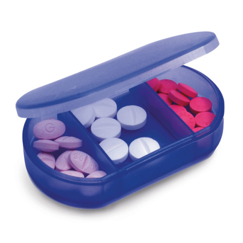 Esse brinde personalizado contém três compartimentos, que permitem que você separe as suas medicações por tipos ou horários e também conta com um design simples e muito prático e dessa maneira você levará a peça para todos os lugares com facilidade.