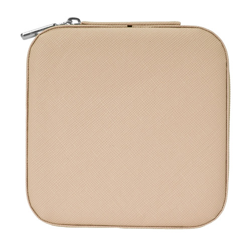 Descrição: Porta joias de couro sintético com revestimento aveludado. Possui compartimentos internos para anéis, brincos, pulseiras e colares.