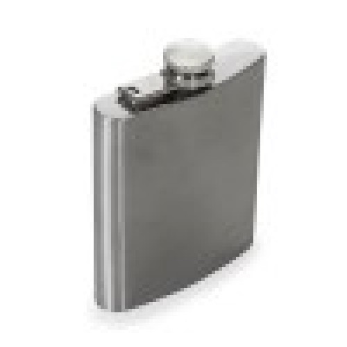 Descrição: Porta whisky de inox com capacidade 207 Ml (7 oz), tampa de rosca sustentada por suporte na lateral superior.