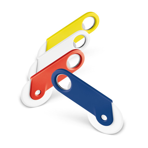 Cortador de pizza com abridor de garrafas. Certificação EU Food Grade. 132 x 63 x 8 mm