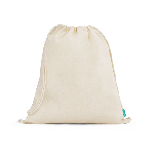 Sacola tipo mochila 100% algodão orgânico (120 g/m²) proveniente de um cultivo sustentável, sem químicos ou pesticidas. 370 x 410 mm