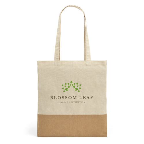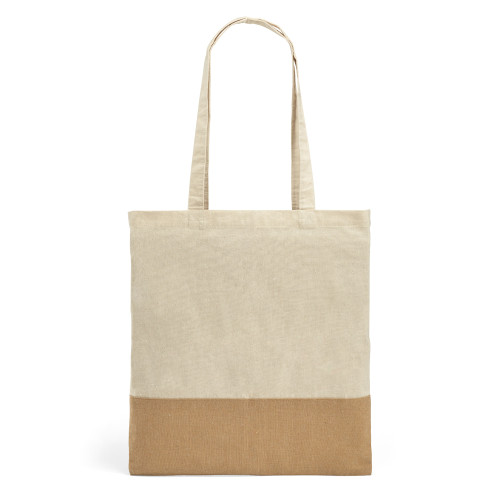 Sacola. 100% algodão: 160 g/m². Detalhe em juta. Alças de 65 cm. 375 x 415 mm