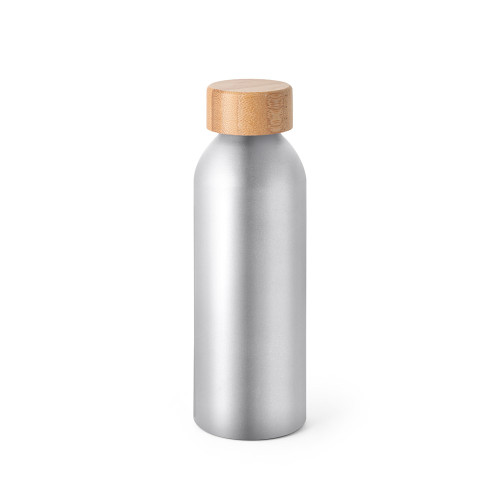 Squeeze de alumínio com acabamento mate e tampa em bambu. Capacidade até 550 mL. Food grade. Caixa branca 94656 vendida opcionalmente. ø65 x 197 mm