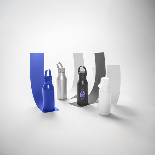 Squeeze em alumínio 100% reciclado com parede simples e acabamento mate. Tampa em PP com pega de silicone para fácil transporte. Capacidade até 700 mL. Fornecido em caixa presente em papel kraft. Certificação EU Food Grade. ø73 x 213 mm