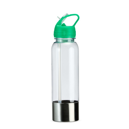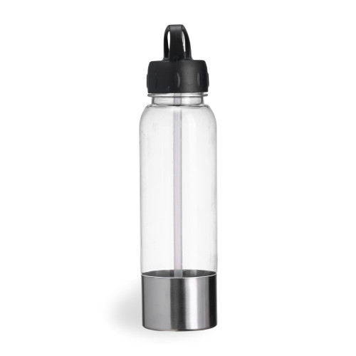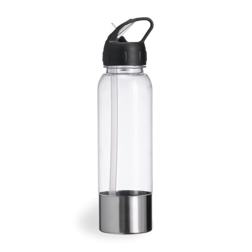 Descrição: Nossa squeeze combina a leveza e a resistência do plástico com a durabilidade e o toque estético de uma base metálica. Com tampa rosqueável e bico prático, ela ainda acompanha um canudo para facilitar a hidratação em qualquer momento, sem derramamentos. Ideal para acompanhar em todas as atividades, essa garrafa une funcionalidade e design moderno na hora de consumir bebidas.