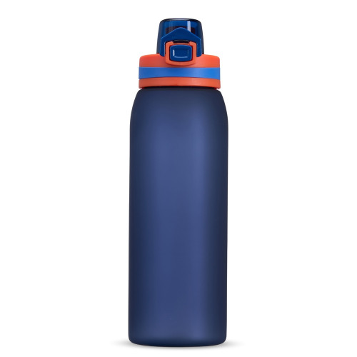 Descrição: Squeeze plástico com capacidade de 900ml. Possui tampa rosqueável com tampa protetora para bocal, trava de segurança com botão de acionamento e alça para transporte. Pintura fosca.