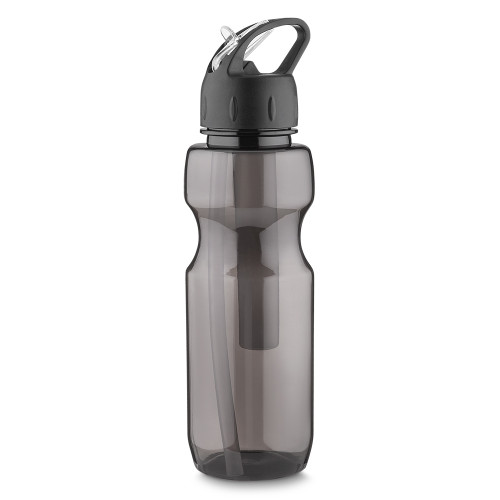 Squeeze plástico 700 ml com ice bar e canudo. Possui detalhes em relevo na tampa, basta levantar o bico para utilizar. Para uso do ice bar basta encher a barra com água e deixar na geladeira para congelar.